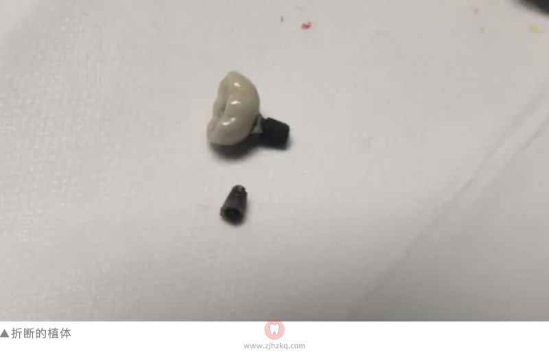 无奈之下,她经朋友介绍找到了杭口城西谷医生这里,希望能够找到牙冠松动的原因。经过医生仔细检查发现,程女士的种植牙植体已经“拦腰折断”,需要取出后重新种牙。